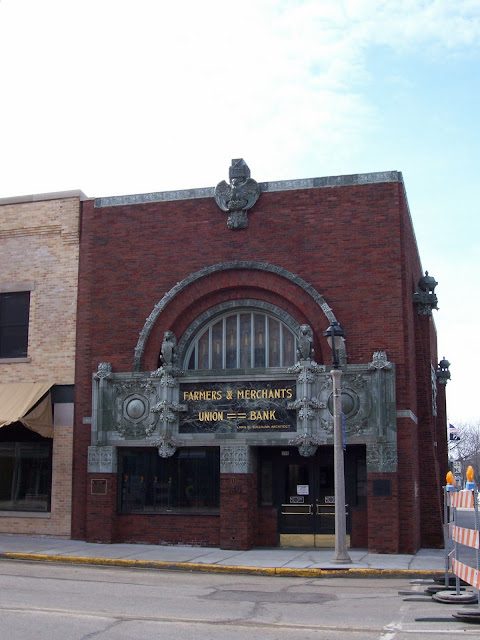 The sort of happy post-script onto the story, though, is a flurry of incredible creativity and exquisite work he did for a bunch of small banks in mid-western farm communities. He built eight of them, from 1908 to 1919, in Minnesota, Indiana, Wisconsin, two in Ohio, and three in Iowa. In my opinion, it's some of the best work he ever did.